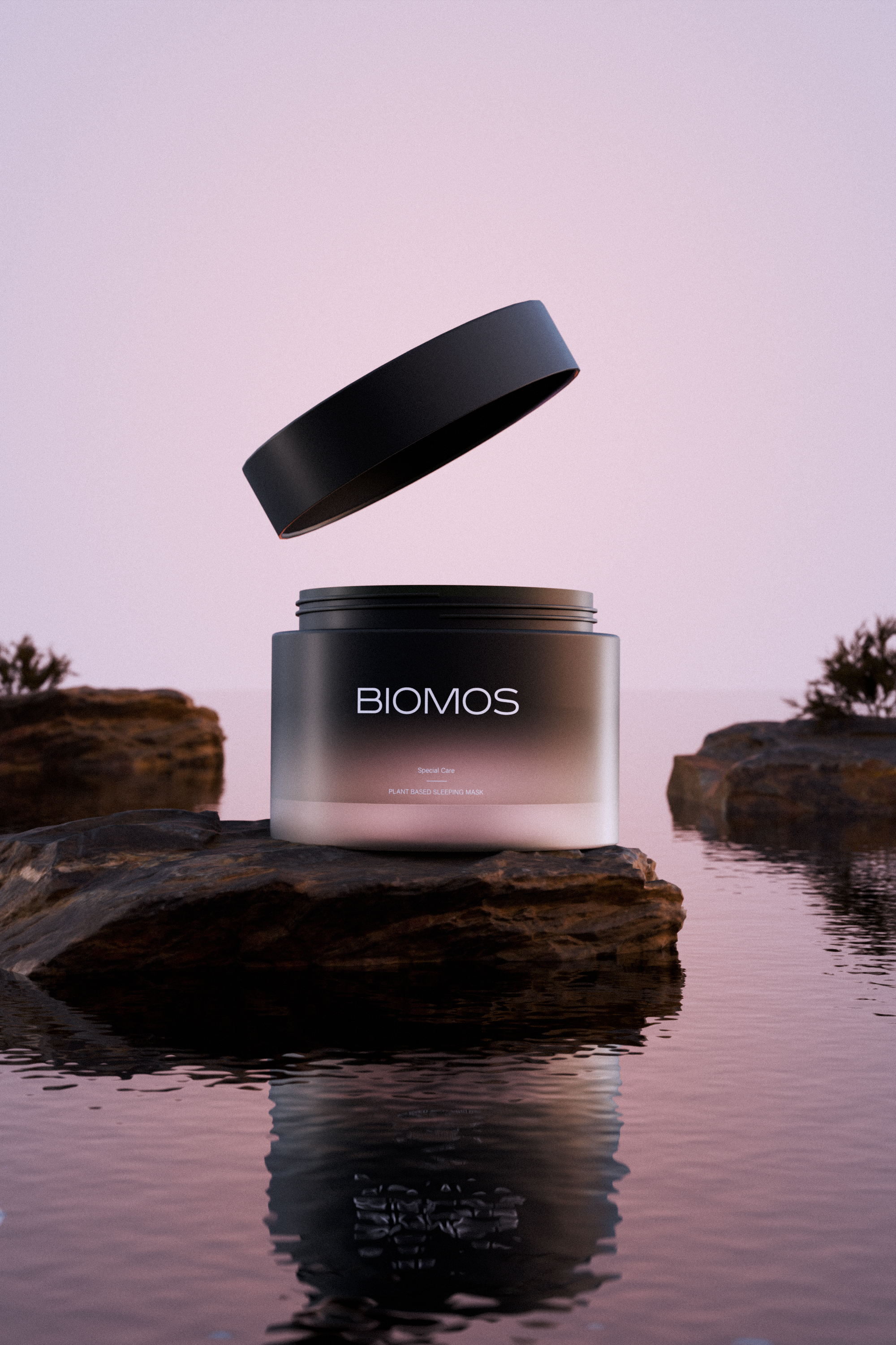 La marque de bien-être Biomos a été imaginée et confectionnée par mes soins, du packaging à la mise en situation, par le biais de la visualisation 3D.